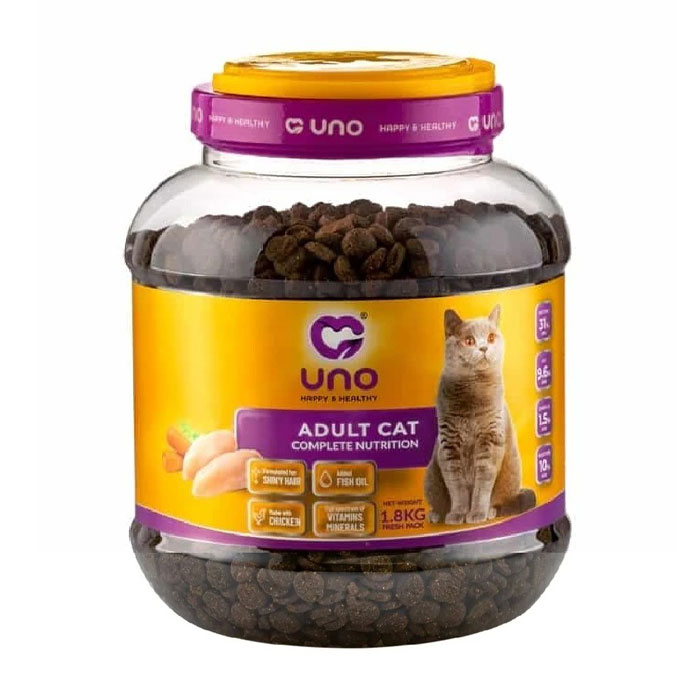 غذای خشک گربه بالغ اونو بر اساس نیازهای بدنی گربه ها فرموله شده و حاوی 25% پروتئین تازه دامی همراه با مکمل های ویتامین و مواد معدنی کمیاب مورد نیاز بدن گربه می باشد. غذای گربه بالغ اونو یک غذای کامل است و در کنار آن نیازی به غذای دیگری نیست.