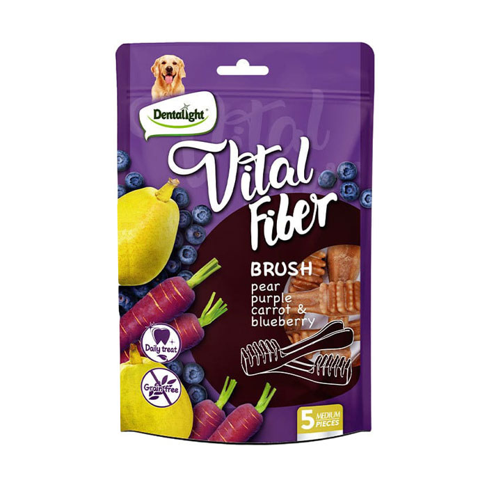 تشویقی دنتال اسنک میوه ای مسواکی با طعم گلابی و بلوبری سایز متوسط دنتالایت با ترکیبات ترکیبی میوه و سبزیجات بدون غلات برای سلامت عمومی و تقویت دستگاه گوارش سگ شما مناسب است. تراکم و فیبر بالای این تشویقی به جلا دادن دندان سگ کمک میکند و پلاکتهای دندانی آن را از بین میبرد و همچنین به شما این امکان را میدهد دندان سگ خود را به روشی آسان مسواک بزنید.