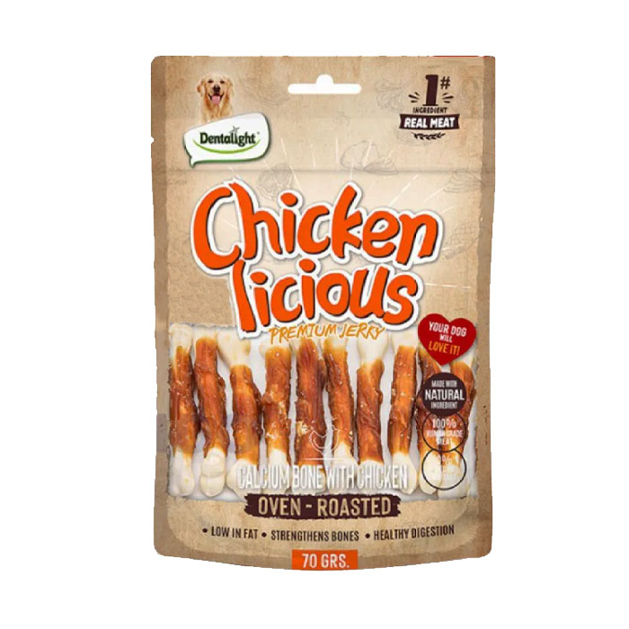 (دنتالایت) تشویقی سگ استخوان کلسیمی با دورپیچ مرغ 70 گرمی