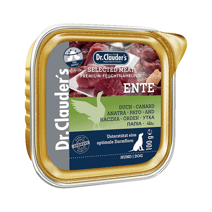 ووم سگ با طعم گوشت اردک حاوی پروبیوتیک 100 گرم دکتر کلادرز یک غذای مرطوب کامل و مغذی برای سگ‌های بالغ است. این پته خوش‌طعم علاوه بر تأمین پروتئین حیوانی سالم، منبع غنی از اسیدهای چرب امگا 3 است که به سلامت پوست، مو و مفاصل کمک می‌کند.