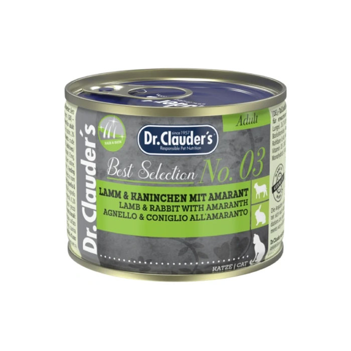 (دکتر کلادرز) کنسرو گربه با طعم گوشت بره و خرگوش تقویت پوست و مو 200 گرمی