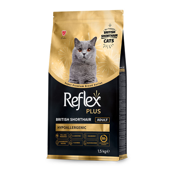 غذای خشک گربه بالغ بریتیش 1/5 کیلویی رفلکس پلاس گلد: