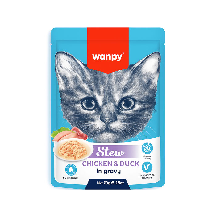 سوپ بچه گربه با طعم مرغ و اردک تکه ای در سس ونپی یک میان‌ وعده نرم، لذیذ و سرشار از مواد مغذی برای بچه گربه‌ هاست. ترکیب دو طعم محبوب مرغ و اردک، آن را به گزینه‌ ای خوش‌ خوراک و مورد علاقه‌ اکثر بچه گربه‌ ها تبدیل می‌کند. این سوپ بچه گربه بافتی لطیف و نیمه‌ مایع دارد که بصورت تکه ای در سس بوده و به راحتی قابل خوردن است.