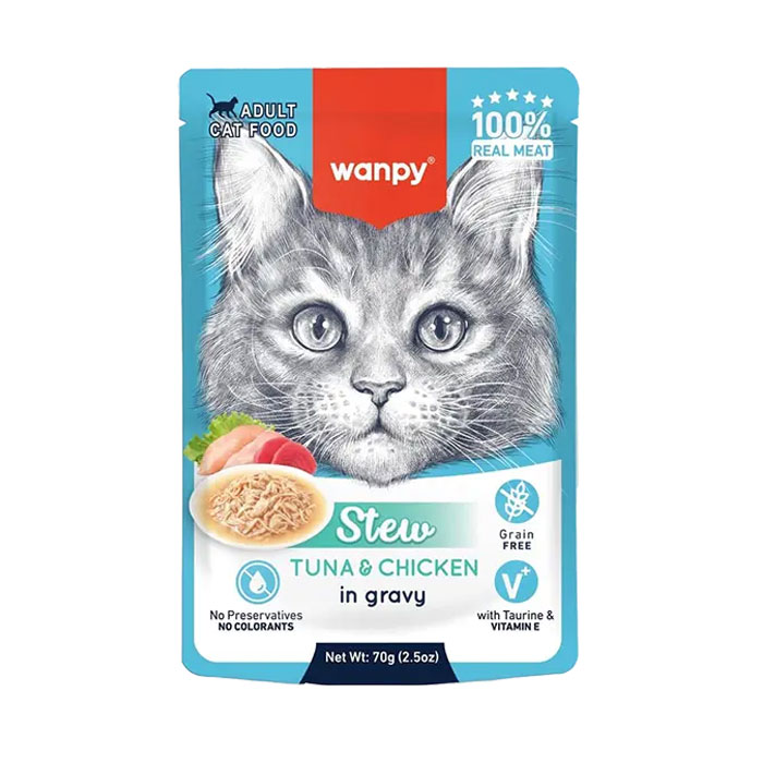 سوپ گربه با طعم مرغ و تن ماهی تکه ای در سس ونپی یک میان‌ وعده نرم، لذیذ و سرشار از مواد مغذی برای گربه‌ هاست. ترکیب دو طعم محبوب مرغ و تن ماهی، آن را به گزینه‌ ای خوش‌ خوراک و مورد علاقه‌ اکثر گربه‌ ها تبدیل می‌کند. این سوپ گربه بافتی لطیف و نیمه‌ مایع دارد که بصورت تکه ای در سس بوده و به راحتی قابل خوردن است.