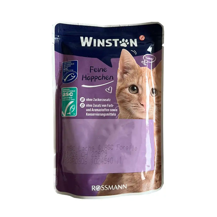سوپ گربه با طعم ماهی سالمون و قزل آلا در سس 100 گرمی وینستون: