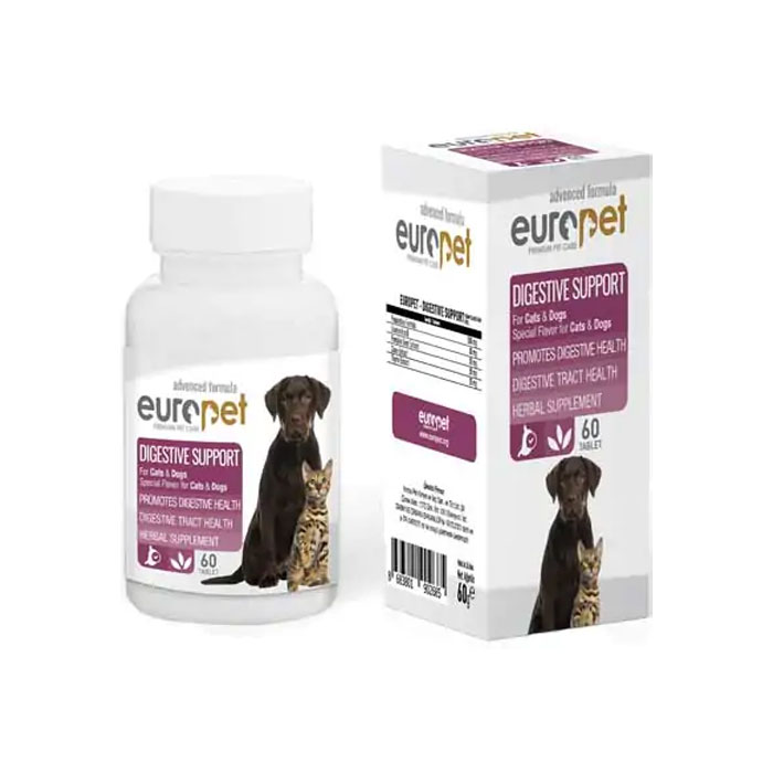 قرص دایجستیو مخصوص سیستم گوارش سگ و گربه 60 عددی یورو پت: